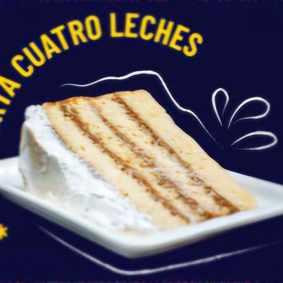 Bizcocho de vainilla remojado en tres leches, relleno con manjar y cobertura de merengue italiano.