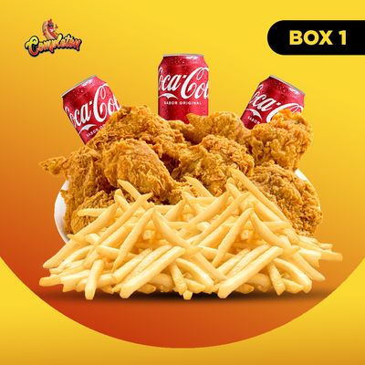 9 ALITAS CROCANTES + 6 EMPANADITAS +15 NUGGETS + 600GR DE PAPAS FRITAS + 3 LATAS DE BEBIDA 350CC